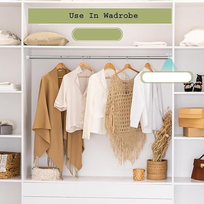 A flexible, adjustable rod for hanging curtains, shelves, or organizers — no drilling needed.